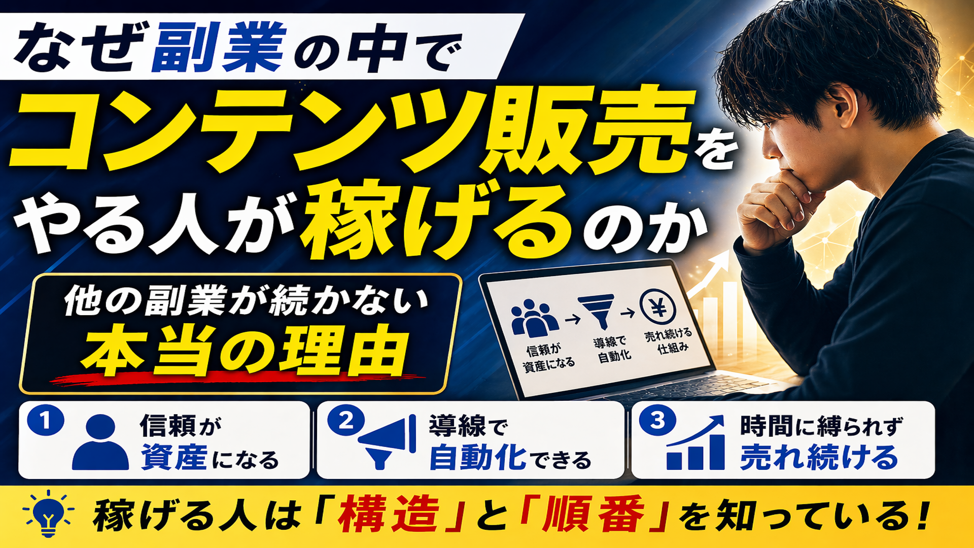 もしあなたが今そう感じているなら、この記事はあなたのためのものです。同じ副業でも「コンテンツ販売」で結果を出し続ける人がいる決定的な理由を、ビジネスの構造から包み隠さず解説します。